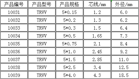 TRVV5芯高柔动力拖链电缆参数: