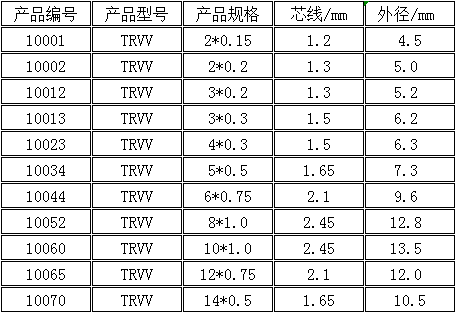 TRVV 高柔动力拖链电缆参数: