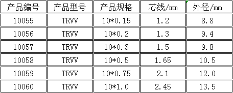 TRVV高柔动力线缆参考表如下: