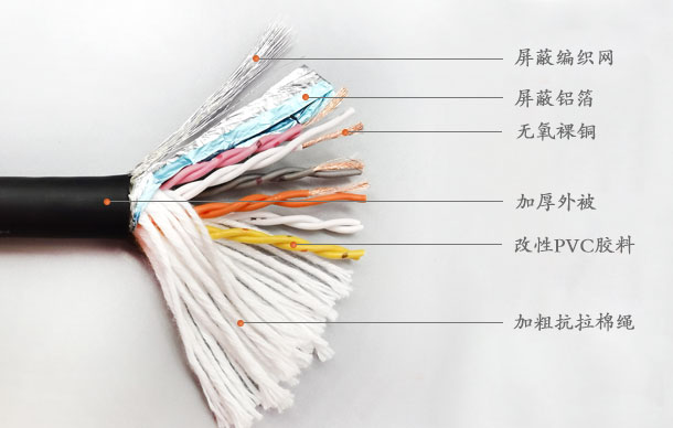 双绞屏蔽特殊柔性结构设计编码器电缆作为在伺服编码器设备单元需要来回移动的场合或固定安装设备场合使用的传输数据电缆,作为测量、检测和控制的编码器软电缆广泛应用于工业伺服编码器电子系统、自动生成线,仓储设备,机器人,室内起重器,包装机械,数控机床和冶金工业等。